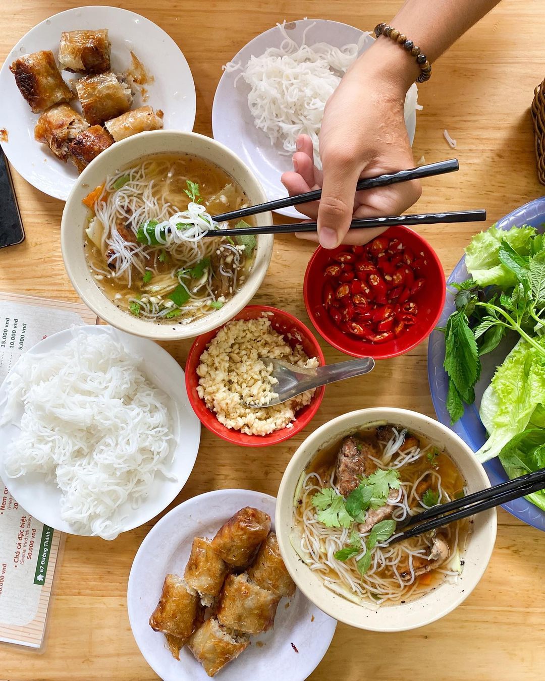 This one is for the guilty pleasure: fried food. This fried cake has minced meat fillings with some eggs. You can also order fried pork, french-fries, fried flour. These dishes taste great with the local Bia hoi. Beside you can also get fresh spring roll, along with traditional Vietnamese fried spring roll. But since you can in a guilty pleasure mode, who cares if they are all deep in oil?