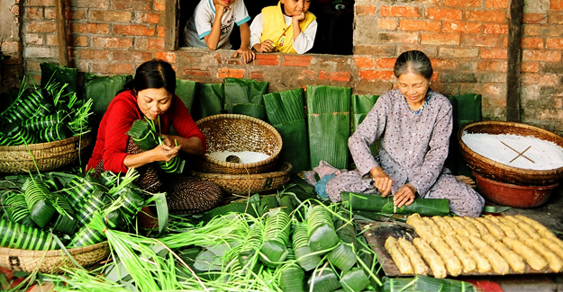 If Banh Chung – Banh Day is considered as a symbol for the North, Banh Tet is a unique dish for Southern people. Banh Tet, as well as its process from making to savoring, has been a significant activity that partially brings the warm Tet atmosphere of reunions among family members and neighbors when they sit together and share the taste of Banh Tet on the first day of New Year.
