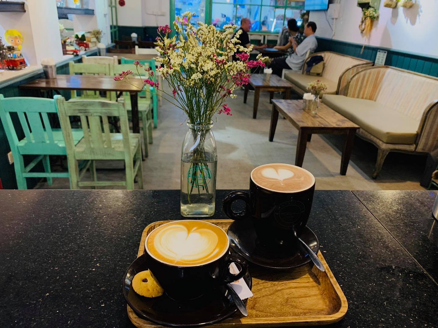 The shop's menu is varied with coffees, smoothies, fruit juices, and frugal teas at reasonable prices. With airy space, delicate combination of books and flowers, this place promises to help relieve the troubles and stress in life.