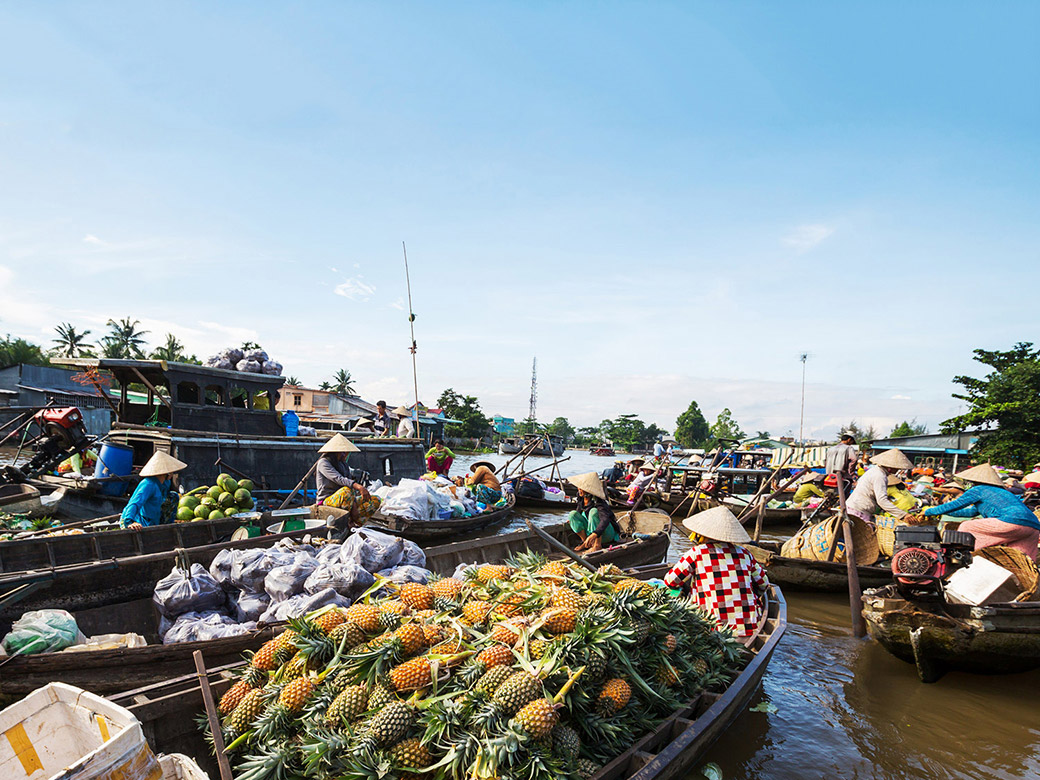 Cai Rang floating market is one of the biggest floating markets in Vietnam. The best time to visit the market is from 5:30 to 8:00 in the morning, which is the busiest time for trading activities. The earlier you come, the fresher the food is and the more stunning the sceneries are