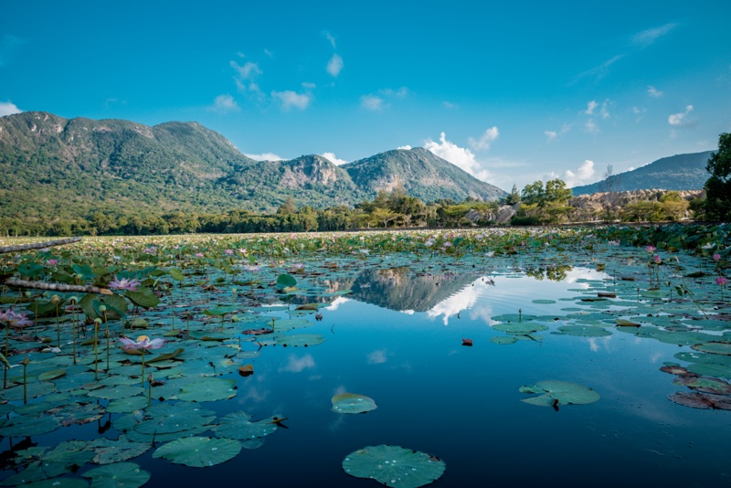 Con Son island has only one main road running across the inhabited zones. When the evening breeze eases off the day’s heat, it will be the ideal time for a motorbike tour. Hire one from the local stores and ride along the coastline. Lotus lakes, orange cliffs, and unspoiled white sand beaches are all present. Remember to stop by the beach to enjoy the cinematic sunset.