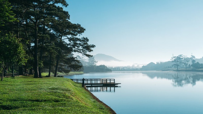 Early morning on Ho Xuan Huong lake , Da Lat, Viet Nam