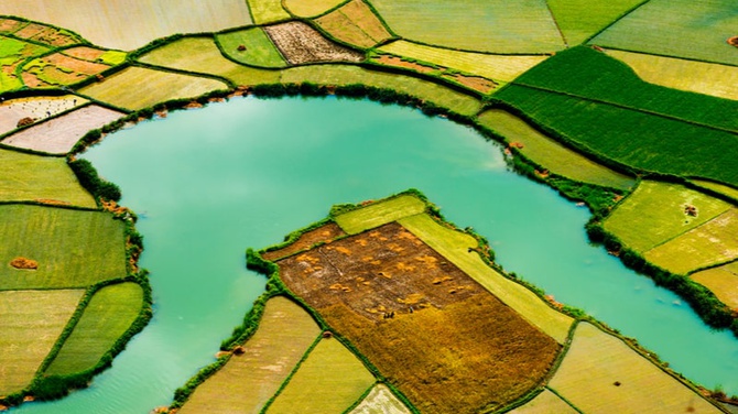 Colorful rice field in valley in Bac Son, Lang Son, Vietnam