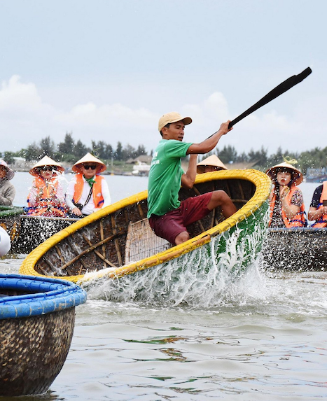 5km to the southeast of Hoi An ancient town, on a small peninsula, lies Cam Thanh Village – an elegant eco-village covered by the leafy Bay Mau coconut forest. Overflowing with rustic ambiance and vivid wet greenery, the existence of bamboo basket boats slowly paddling under interspersed coconut groves adds to the village’s charming beauty.