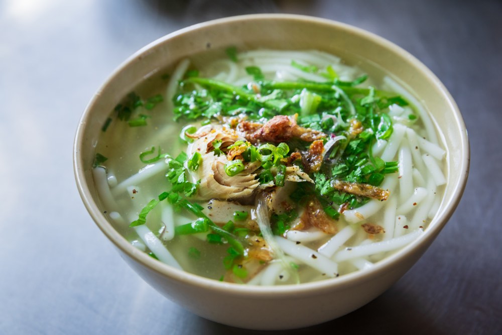 If nem nuong is favored for a snack within a day, a bowl of Bun Cha Ca Nha Trang is very suitable for your breakfast, lunch, or dinner. The broth is made from fish mackerel bones. The thicker rice vermicelli is put into the broth and enjoyed with fried fish cake, fish balls, vegetables, tomatoes, green onion, and some slices of pineapple. All flavors are well mixed and matched, not too fishy, and bring a perfectly natural sweet taste of fish.