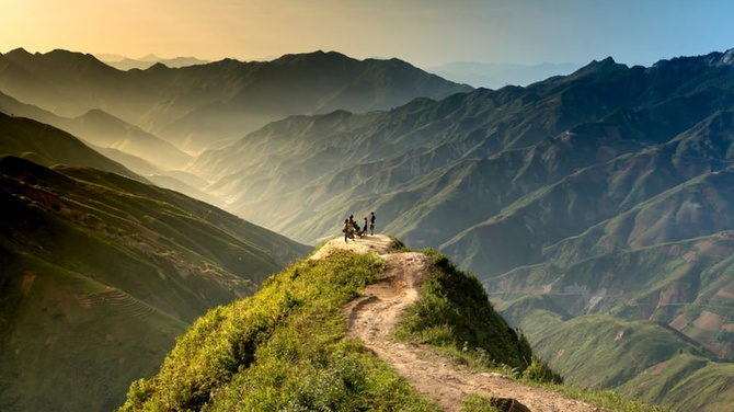 The trail of dinosaurs spine and the top of the mountains Ta Xua, Son La, Vietnam