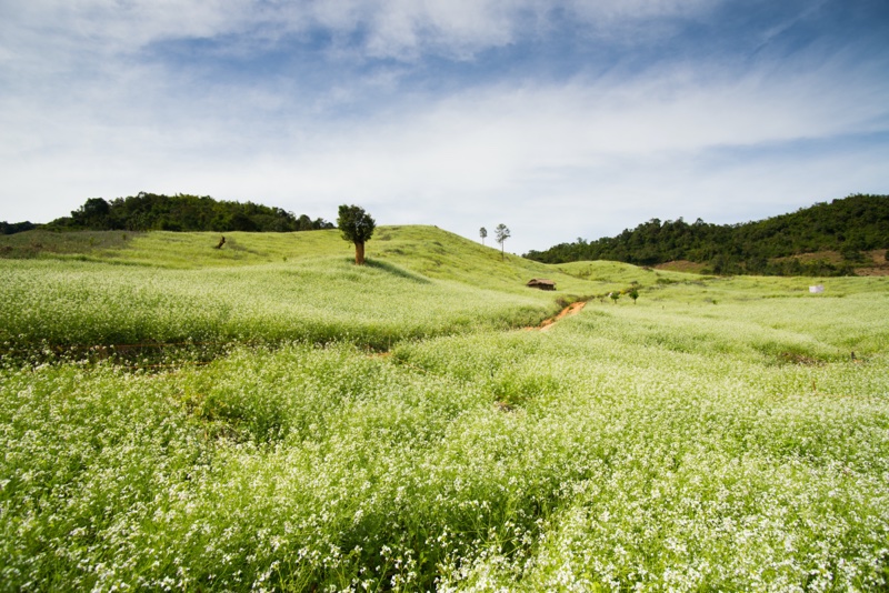Thong Cuong (or Thung Cuong) is one of the Mong ethnic villages situated between Moc Chau and Van Ho district. Winding along the village roads are the boundless valleys of flowers, white ones to be exact.