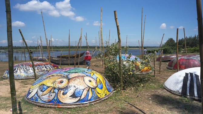 Old boats from small fishing village in Tam Thanh, Tam Ky, Quang Nam, Vietnam
