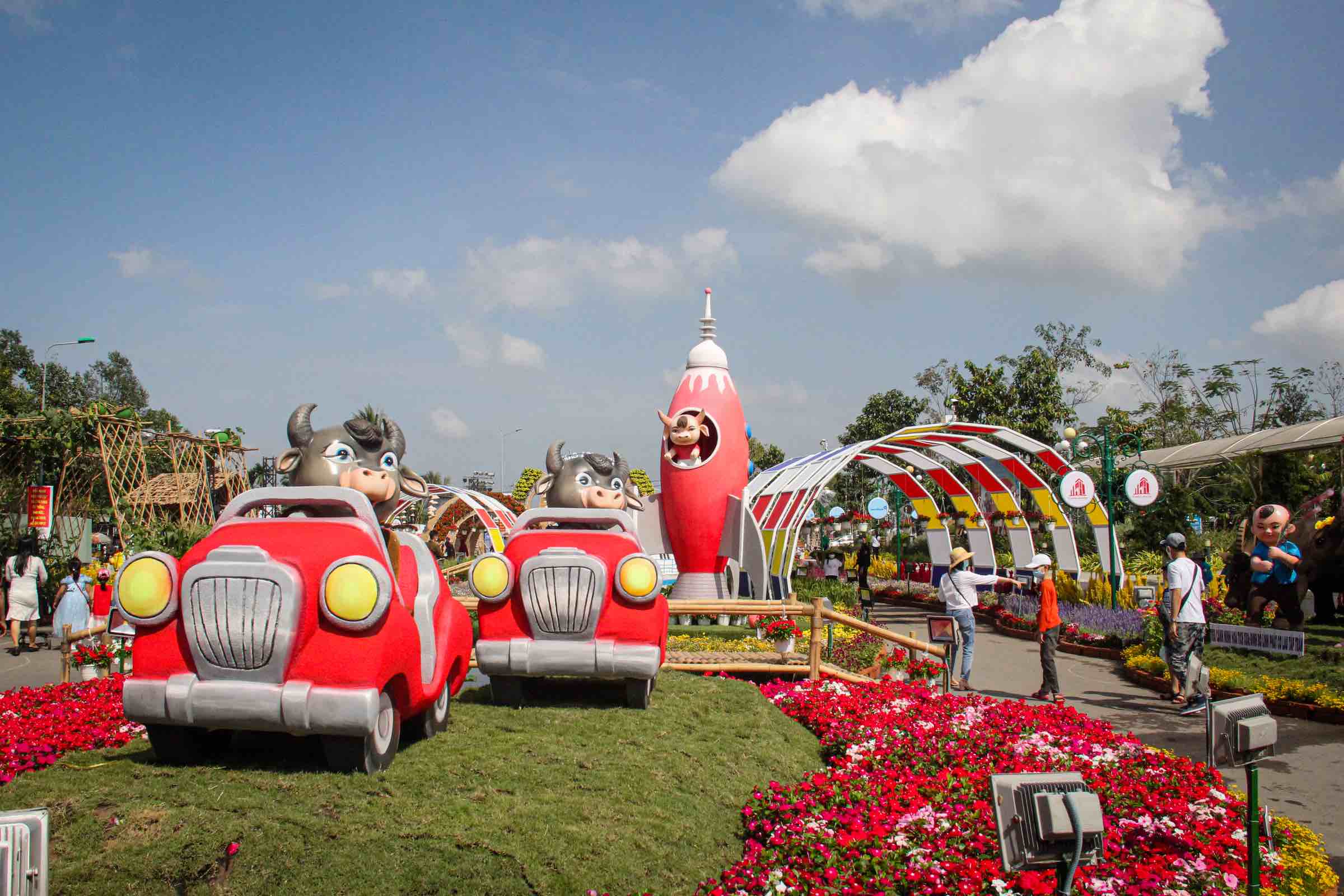 The Mekong Delta celebrates Tet with a unique flower demonstration in Can Tho - Tet Mascots are also creatively illustrated - Photo: Vnexpress