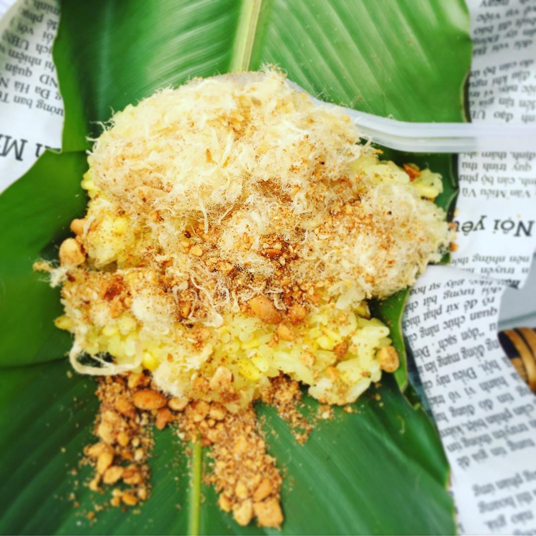Sticky rice is the fastest way to get yourself full and ready for the day. You can choose from white sticky rice or yellow sticky rice. It is eaten with shaved bean curd, fried shallots and any kind of toppings, from eggs to pate to caramelized pork