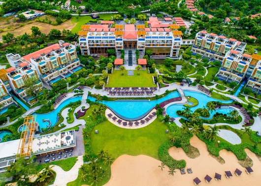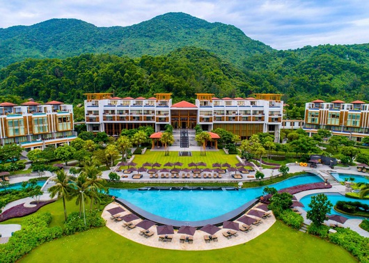 Featuring 229 chic rooms and suits with classy modern design and unparalleled comfort, Angsana Resort ranked 2nd place among the Top 20 Best Resorts in Asia 2019 by Readers Choice Awards. Sprawling on a pristine beach in the Gulf of Lang Co, it showcases the speechless beauty of the endless turquoise ocean and the rocky Truong Son mountain range. Ideal for anyone seeking a beach getaway with their beloveds, this resort ensures a memorable vacation hardly found anywhere else.