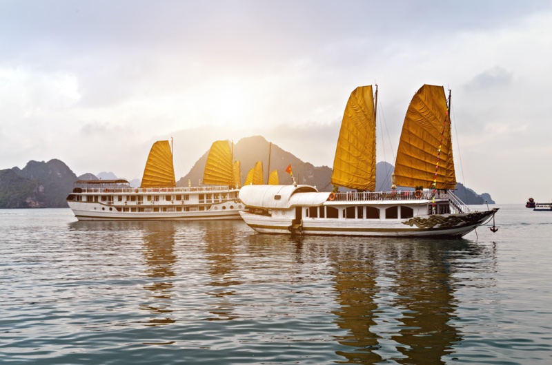 Morning enjoy the sunrise with Tai Chi lesson on the deck. We offer kayaking trip to visit caves nearby, hidden coves and floating village. Lunch on support boat. Back to the mother boat for dinner and overnight.