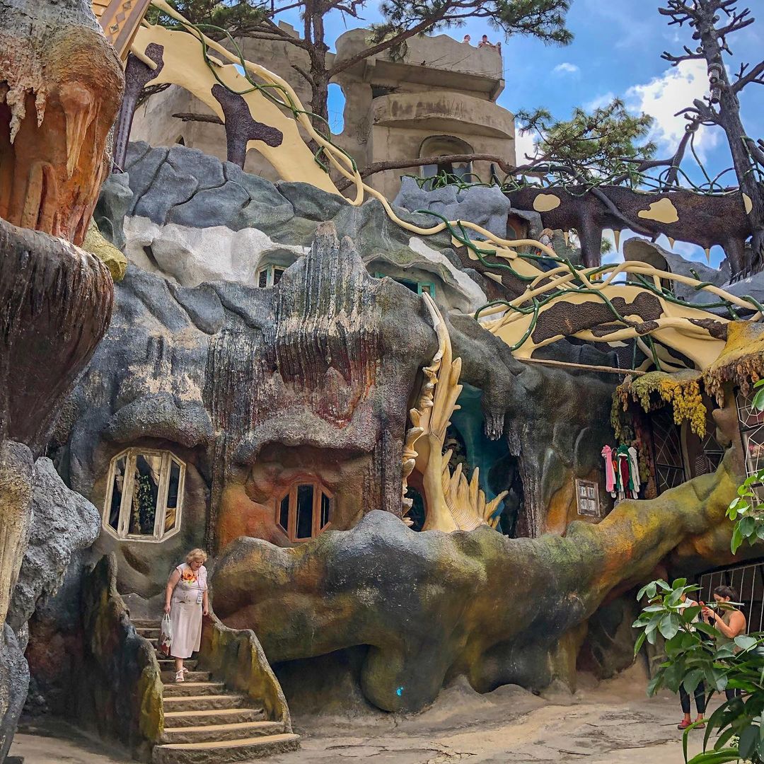 Wild and weird! There are so many things to say about this renowned extraordinary hotel in Dalat City. Perched on a hilly mountain, Crazy House, also known as Hang Nga Guesthouse differentiates itself from other French-style villas with a maze of spiral staircases, multi-shaped sculptural rooms, and rugged surfaces. Interestingly, inspired by expressionist architecture, each guesthouse is named after a plant or an animal such as Termite Room and Tiger Room.