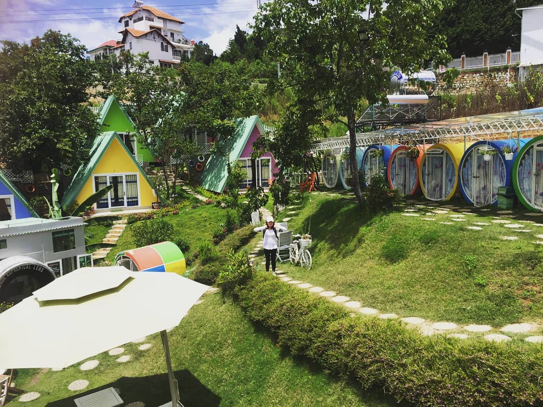 DalatOtel with its one-of-a-kind colorful circle accommodations is a dreamy destination for seasoned backpacking travelers. This vivid and youthful homestay is nestled into a steep mountainside thus you can expose to the airy and fresh atmosphere. The rooms are not spacious yet cozy and well-appointed with necessary amenities. From your rooms, you are able to contemplate multi-colored flower gardens and picturesque surroundings.
