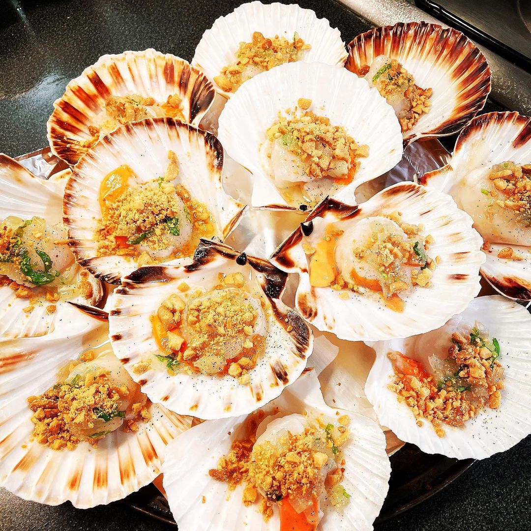 With a pleasant unique taste, scallops are eaten raw as sashimi or processed to make a number of dishes such as stir-fried scallop with butter, grilled scallops with onion, grilled scallops with cheese, scallop porridge, or stir-fried scallops with vegetables. It is great to enjoy a plate of scallops full of subtle sea flavor while sipping a glass of wine and watching the sunset on the sea.