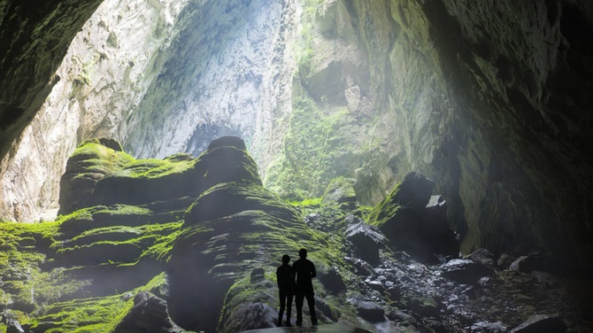 Mystery misty cave entrance in Son Doong Cave, Phong Nha-Ke Bang National Park, Quang Binh province, Vietnam