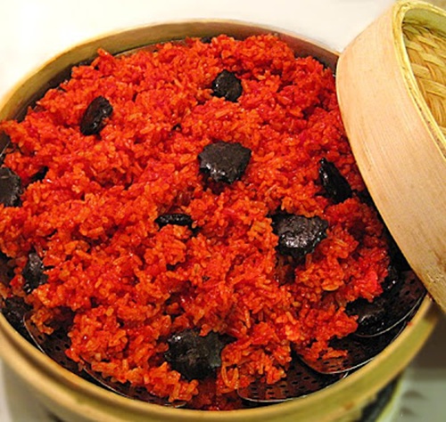 Rice is an indispensable food for Vietnamese, so there is no doubt why it must be in the altar in religious rituals, as the tribute for spiritual gods. Moreover, according to Asian beliefs, the color of red symbolizes good fortune and happiness, so red will appear everywhere in joyful occasions like weddings or New Year occasion. Thus, “xoi gac”- a perfect combination of rice and red, inevitably, is chosen to be the special food in Vietnamese tradition.