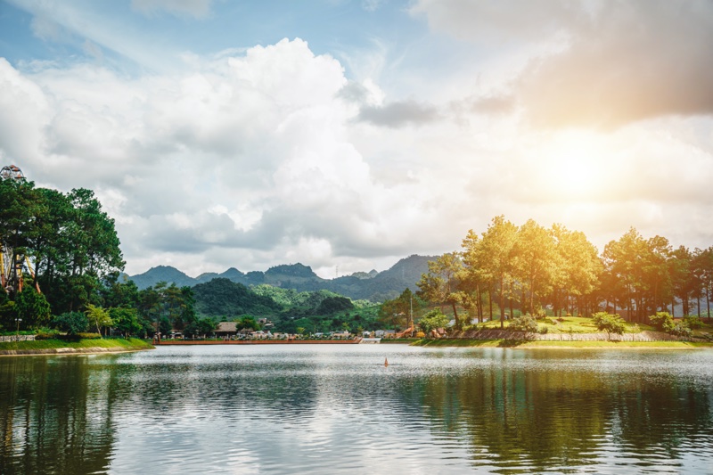 Ang village hangs in the prime location of Moc Chau plateau, making it attractive among attractions. Not only blessed with clean air, a clear lake, and romantic pine forests, the place also saves the cultural treasures of Thai persons.
