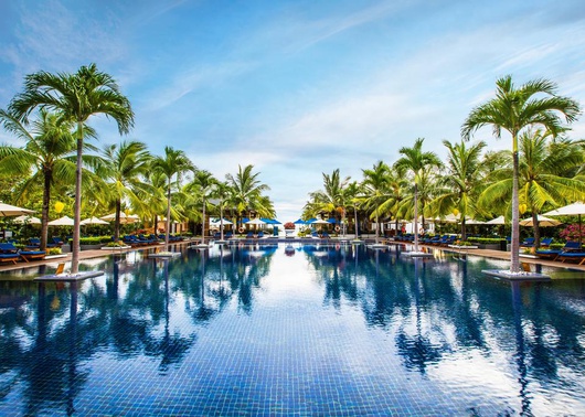 Located on the coastline of the dreamy and charming Cua Dai Beach, Sunrise Premium Resort looks like a magnificent castle stretching out into the East Sea, promising to be a must-stop for those who love the fresh air of the sea and want to escape from the bustle and hustle city. The resort's 242 sophisticatedly designed luxurious rooms and suites will give you the opportunity to become the first ones to welcome the warm sunrise on Cua Dai Beach, as well as witness a sparkling and vivid picture created by the sun and the sea. Therefore, this resort is definitely an ideal choice for your extravagant vacation in ancient Hoi An.