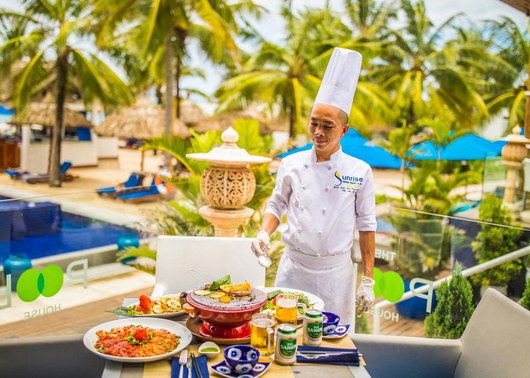 Sunrise Premium Resort offers you the culinary quintessence deserving the 5-star class, from traditional cuisine to extravagant international dishes. The Pool House Restaurant with elegant design serves visitors fresh seafood dishes and rich Asian - European dishes. If you want to enjoy traditional Vietnamese flavors and local specialties, do not miss Spice Restaurant - where you can witness the chef's cooking skills on hot stones. Not only offering diverse Vietnamese dishes, the resort also gives you a European culinary paradise at The Lounge - a luxurious and elegant space with a classy bar area.