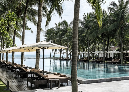 Situated on a pristine beach and surrounded by a huge palm and coconut garden, the resort is likely an oasis separated from the old trade port but still brings Hoi An ancient atmosphere through the hanging lanterns along the boardwalk.